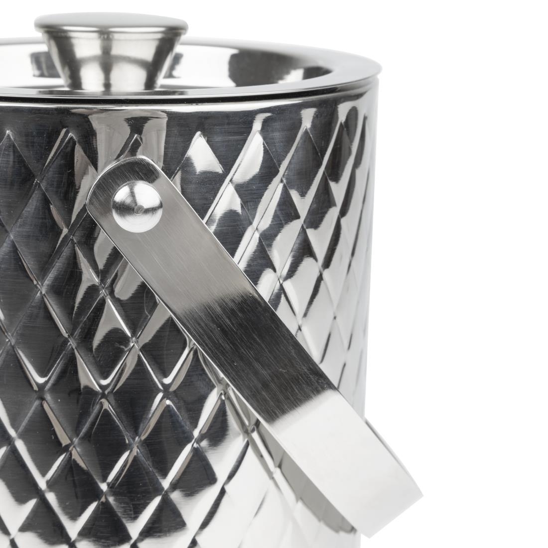 Wykonany z wysokiej jakości stali nierdzewnej, posiada podwójne ścianki, które utrzymują lód w idealnej temperaturze i gotowy do serwowania. Wyposażony w solidną pokrywę i praktyczny uchwyt, kubełek zapewnia łatwy dostęp do lodu, jednocześnie utrzymując jego zawartość w optymalnym chłodzie. Stylowe dekoracyjne wykończenie dodaje mu elegancji i nadaje unikatowy, wyrafinowany wygląd.