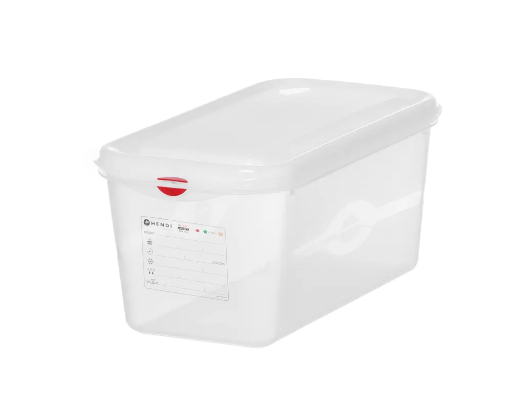 Pojemnik GN 1/3 marki HENDI wykonany z trwałego polipropylenu to praktyczne rozwiązanie do przechowywania, transportu i organizacji produktów spożywczych w gastronomii. Transparentne ścianki umożliwiają szybką identyfikację zawartości, a szczelne, hermetyczne zamknięcie skutecznie chroni żywność przed wysychaniem i zanieczyszczeniami. Prostokątny kształt oraz możliwość piętrowania pozwalają na wygodne i efektywne wykorzystanie przestrzeni w kuchni, magazynie lub chłodni.