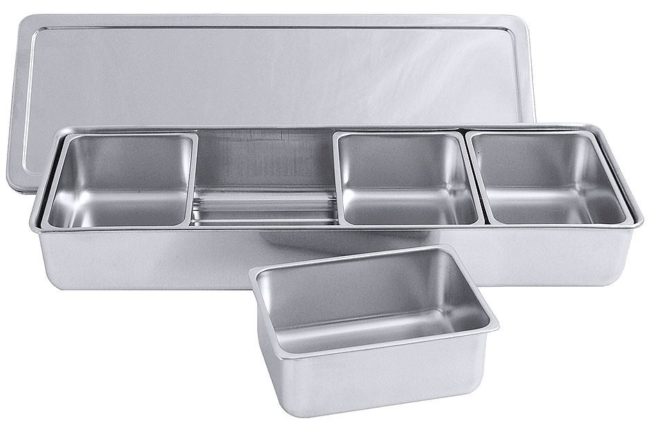 Pojemnik na dodatki ze stali nierdzewnej, 4x0,75 l, 400x140x62 mm