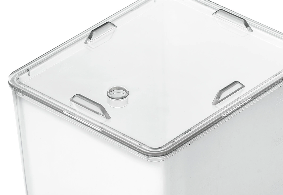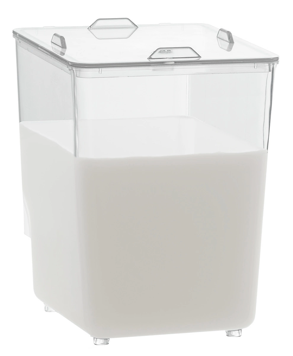 Pojemnik wykonany jest z wytrzymałego tworzywa sztucznego ABS, co zapewnia trwałość i odporność w codziennym użytkowaniu. Przezroczysta konstrukcja ułatwia kontrolę poziomu mleka, a kompaktowe wymiary sprawiają, że pojemnik idealnie współpracuje z dedykowaną lodówką na mleko KV9L.