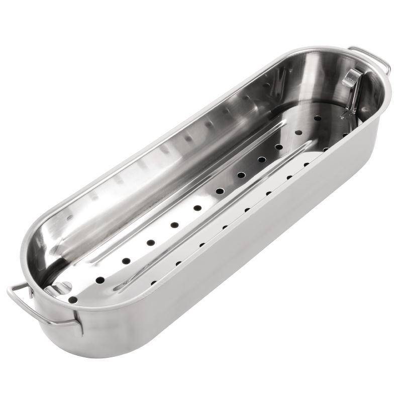 Pojemnik zaprojektowany z myślą o przyrządzaniu soczystych ryb. Naczynie zostało wykonane ze stali nierdzewnej, która zapewnia łatwe czyszczenie, utrzymanie i długą trwałość. Produkt dostosowano do użytkowania zarówno w profesjonalnych kuchniach, jak i warunkach domowych.