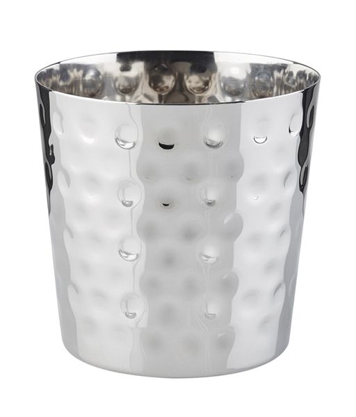 Okrągły pojemnik na przekąski wykonany ze stali nierdzewnej. Można myć w zmywarkach i sztaplować.