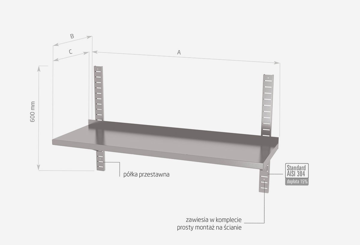 - półka wykonana z wysokiej jakości stali nierdzewnej AISI 430,
