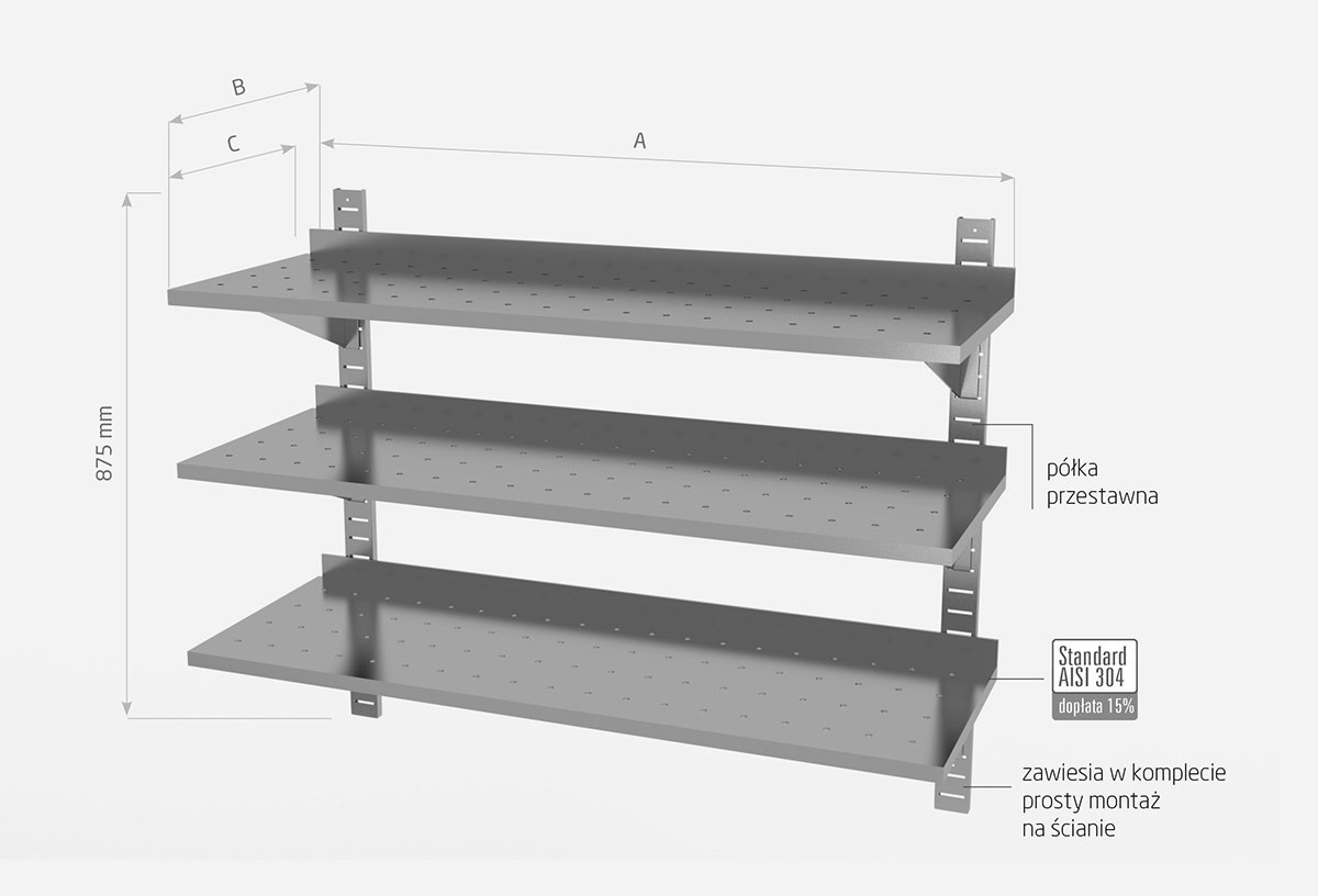 - półka wykonana z wysokiej jakości stali nierdzewnej AISI 430,