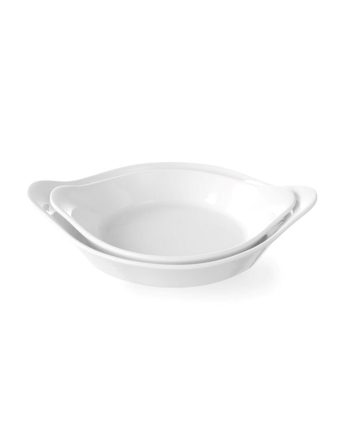 Półmisek do zapiekania okrągły z uchwytami. Najbardziej wytrzymały typ porcelany na rynku, adresowany zarówno do klientów branży gastronomicznej jak i do indywidualnych miłośników prostego stylu.