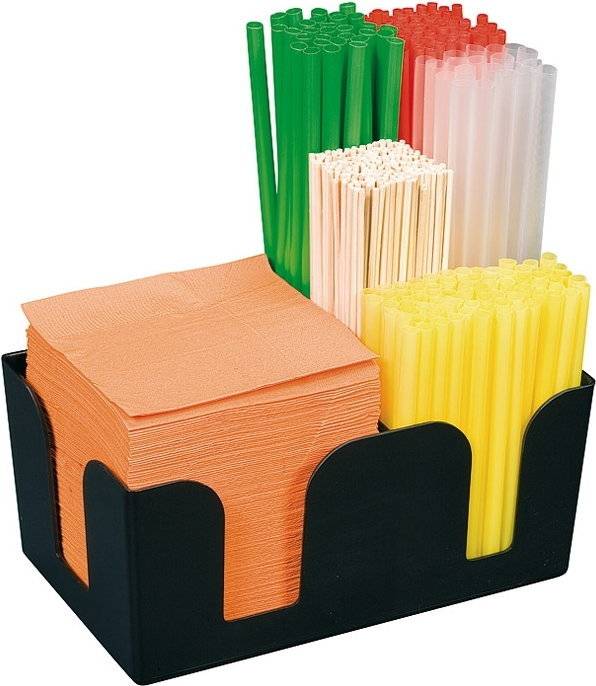 Organizator pozwala na przechowywanie słomek, serwetek, mieszadełek, zapałek itp..