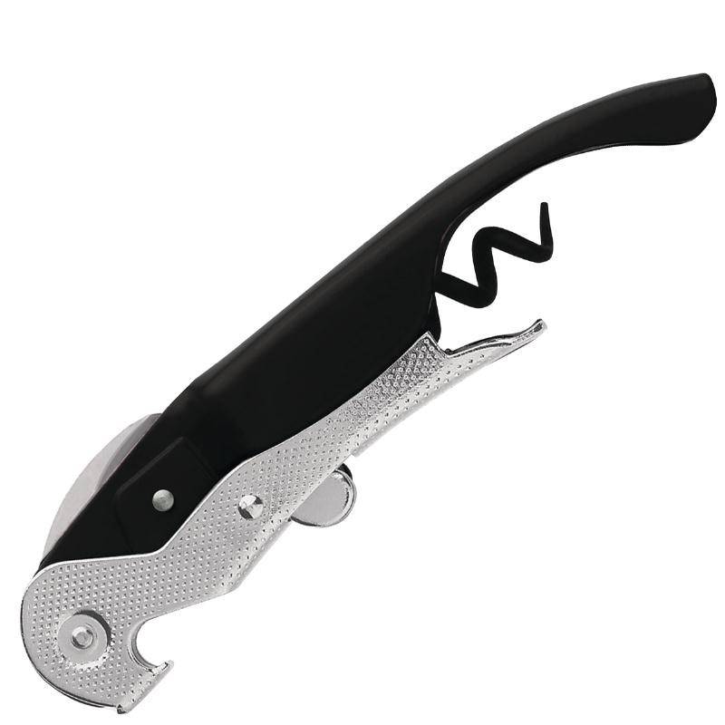 Pomocnik kelnerski wykonany ze stali nierdzewnej, ze spiralą pokrytą teflonem. Mechanizm ułatwia otwieranie butelek. Solidna konstrukcja zapewnia, że korkociąg będzie służył przez długi czas.
