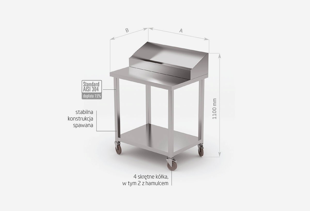 Pomocnik kelnerski ze stali nierdzewnej o wymiarach 650x510x(h)1100 mm