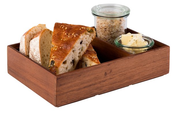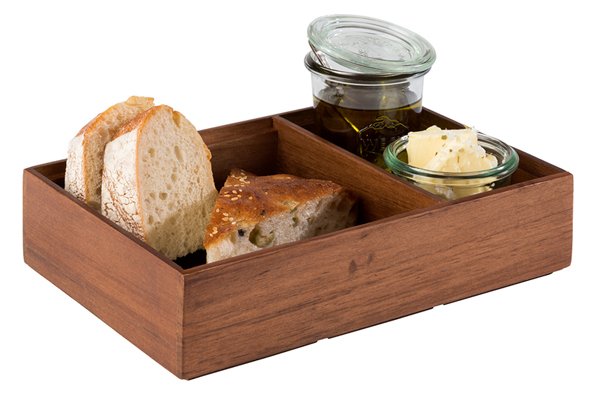 Pudełko wykonane z drewna akacjowego. Można sztaplować. Nie można myć w zmywarce. Wymiary wewnętrzne : 135 x 130 mm / 65 x 130 mm