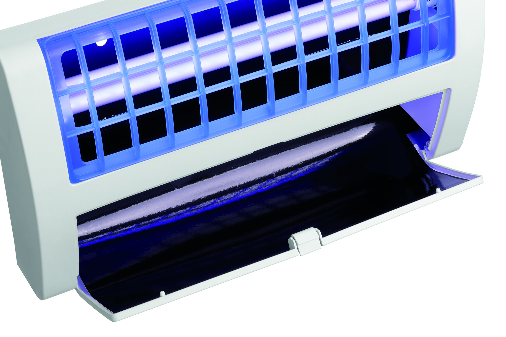Bezgłośna i higieniczna pułapka na owady o dużym promieniu działania przyciąga owady dzięki światłu UV. Owady przyklejają się do znajdującej się za nim folii przylepnej, którą można łatwo wymienić.Podmiot odpowiedzialny (GPSR):