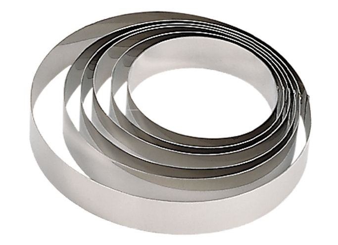 Okrągły pierścień o 6 cm wysoki prostymi krawędziami, idealny do wytwarzania vacherins. High-end sprężyna pierścieniowa ze stali nierdzewnej. Regulowana grubość pierścień zachowuje kształt, ale nie jest zbyt gruba, na dobre konwekcję ciepła. Wytrzymałe i elastyczne pierścień łatwe jej wyjmowanie z formy. Gładką powierzchnią wewnętrzną bezawaryjnej deserów pierścieniowe zaprojektowane. Doskonale wyrównane boki bez przesunięcia w którym spawane. Trwałe znakowanie: rozmiar wyryty na pierścieniu dla łatwej identyfikacji. Idzie w zamrażarce, Głębokie-zamrażarka, lodówka, agregatu Blast. Piekarnik bezpieczne. Nie stosować z preparatami ciekłymi. Pielęgnacja: można myć w zmywarce. Dostępne średnice. Od 12 do 30 cm