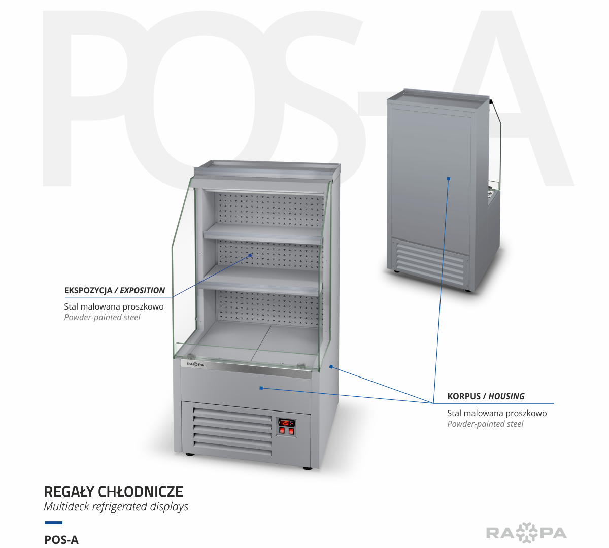 Zyskasz dodatkową przestrzeń, bo na regale możesz postawić produkty, które nie wymagają chłodzenia.Stworzysz atrakcyjną ekspozycję dzięki energooszczędnemu oświetleniu LED.Wzmocnisz sprzedaż, bo urządzenie wyposażyliśmy w listwy cenowe, dzięki którym klient dokładnie wie, ile zapłaci.Zapewnisz bezpieczne zakupy, bo w urządzeniu wykorzystaliśmy wytrzymałe, hartowane szyby. Ułatwisz podjęcie decyzji, bo produkty będą umieszczone na optymalnej wysokości.Oszczędzisz czas potrzebny na konserwację, bo dostęp do skraplacza nie wymaga użycia narzędzi, a kratka wentylacyjna jest zamykana na magnes.Zadbasz o środowisko, bo POS-A posiada ekologiczny czynnik R-290 i zatroszczysz się o swoje produkty, które będą chłodzone równomiernie dzięki perforowanym plecom urządzenia.Swobodnie ustawisz i wypoziomujesz urządzenie, dzięki regulowanym nogom.Bez trudu dobierzesz kolor, który podkreśli Twoją markę i przyciągnie uwagę klienta. Zachowasz smak i świeżość produktów na dłużej, bo będą przechowywane w niskiej temperaturze.Szczegóły: