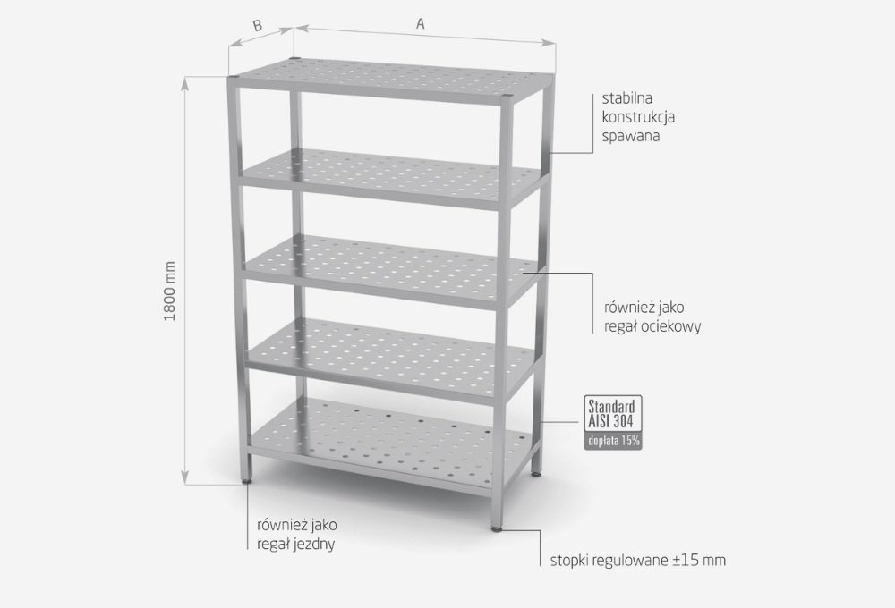 - regał wykonany z wysokiej jakości stali nierdzewnej AISI 430,