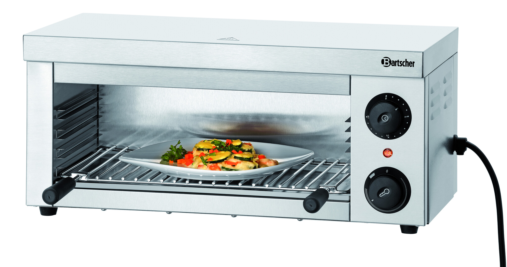 Salamander z regulowanym na wysokość rusztem grillowym jest wyposażony w 1 strefę grzewczą, którą można aktywować za pomocą timera na maks. 15 minut. Model 401-1Z-W, dzięki znajdującym się z tyłu uchwytom, nadaje się do użytku jako urządzenie nablatowe, jak i do montażu ściennego na ognioodpornych powierzchniach ścian.Podmiot odpowiedzialny (GPSR):