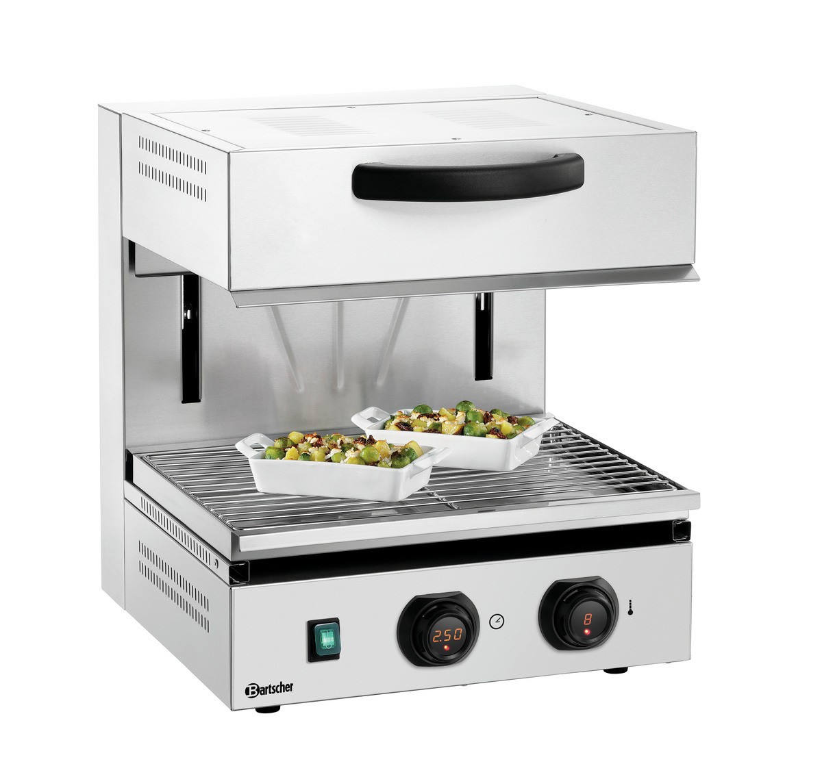 Salamander z inteligentnym sterowaniem MDI spełni każde życzenie: moc grzewczą można regulować za pomocą funkcji opuszczania oraz poprzez dokładne cyfrowe ustawienie temperatury i czasu. Funkcja Memory oraz sygnał akustyczny po upływie czasu zapewniają zoptymalizowane procesy pracy. Energooszczędny tryb Eco umożliwia delikatne podgrzewanie potraw i oszczędność kosztów.Podmiot odpowiedzialny (GPSR):