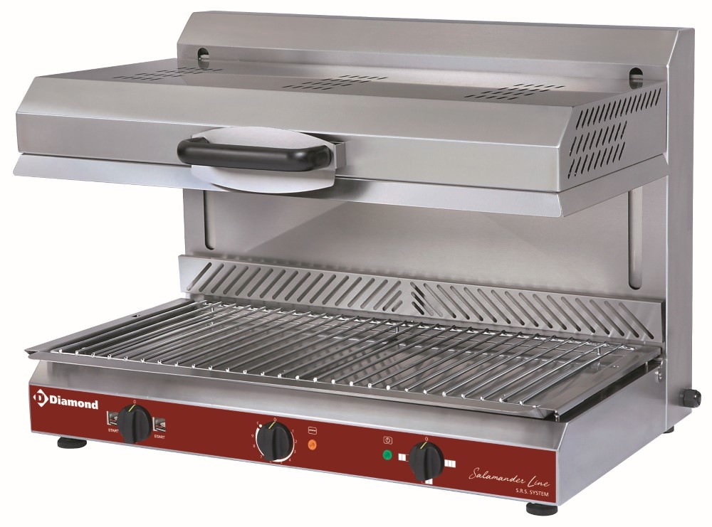 Elektryczna salamandra z trzema niezależnymi strefami grzewczymi przeznaczona do intensywnej eksploatacji w kuchniach gastronomicznych. Umożliwia szybkie zapiekanie, gratynowanie, opiekanie tostów i warzyw, a także podgrzewanie potraw bez konieczności wcześniejszego nagrzewania. Urządzenie pozwala na oszczędność energii i pełną kontrolę temperatury dzięki automatycznemu systemowi wykrywania naczynia.