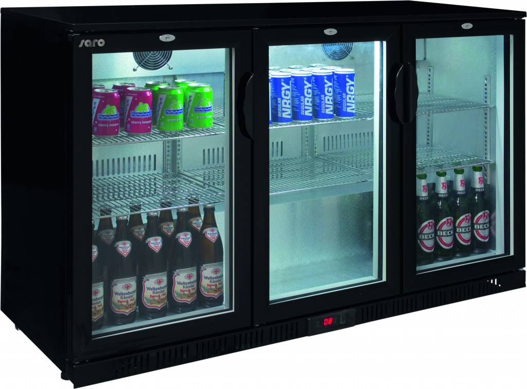 Chłodziarka barowa z 3 drzwiami uchylnymi, od 2 °C do 10 °C, 320 L, czarna