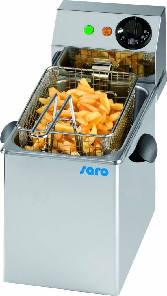 Solidnie wykonana frytownica nastawna ze stali nierdzewnej. Urządzenie posiada wyjmowany zbiornik o pojemności 6 litrów, termostat bezpieczeństwa, wyjmowaną grzałkę oraz kosz. Wyjmowane elementy umożliwiają łatwe czyszczenie. Temperatura regulowana jest w zakresie do 190 °C.
