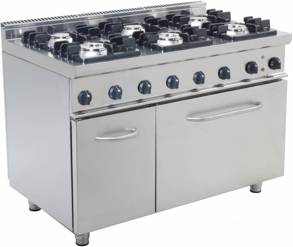 Kuchnia gazowa z 6 palnikami, szafką zamkniętą i piekarnikiem gazowym GN 2/1, 120 L, 43,9 kW