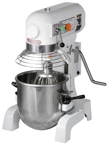 Wytrzymały mikser planetarny z 3 stopniami prędkości i silnikiem 450 W. Do miksera załączono dzieżę, hak, rózgę, mieszadło płaskie oraz kratę osłonną, które zostały wykonane z mocnej stali nierdzewnej. Dzieża poruszana jest za pomocą mechanizmu dźwigniowego. Obudowę urządzenia wykonano ze stali pomalowanej proszkowo na biało.