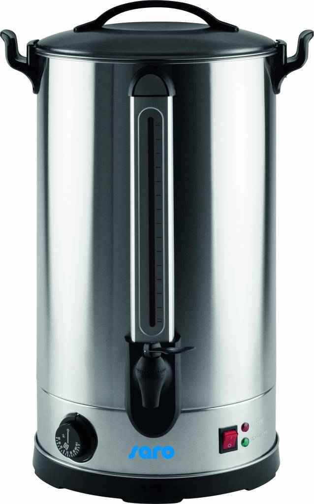 Wytrzymały warnik do wody z regulacją temperatury od 30 do 110 °C. Pojemność 30 litrów i grzałka o mocy 2500 W zapewniają świetną wydajność, która sprawi, że urządzenie sprawdzi się do podgrzewania wina, wody, herbaty i kawy w bufetach i stołówkach. Warnik posiada dwie lampki kontrolne, wskaźnik poziomu napełnienia, pokrywę i niekapiący kran.