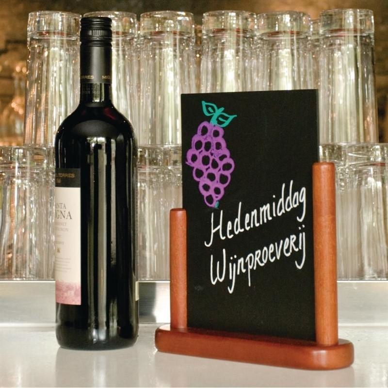 Doskonała do postawienia na stole czy przy barze, aby zwracać uwagę na oferty specjalne. Tablica umieszczona jest w półzamkniętej podstawie, która zapewnia stabilność i ochronę. Można ją łatwo wyjąć i zapisać. Tablica jest dwustronna co maksymalizuje widoczność ofert. Świetna do numerowania stołów, oznaczania restauracji czy promowania napojów i ofert specjalnych.