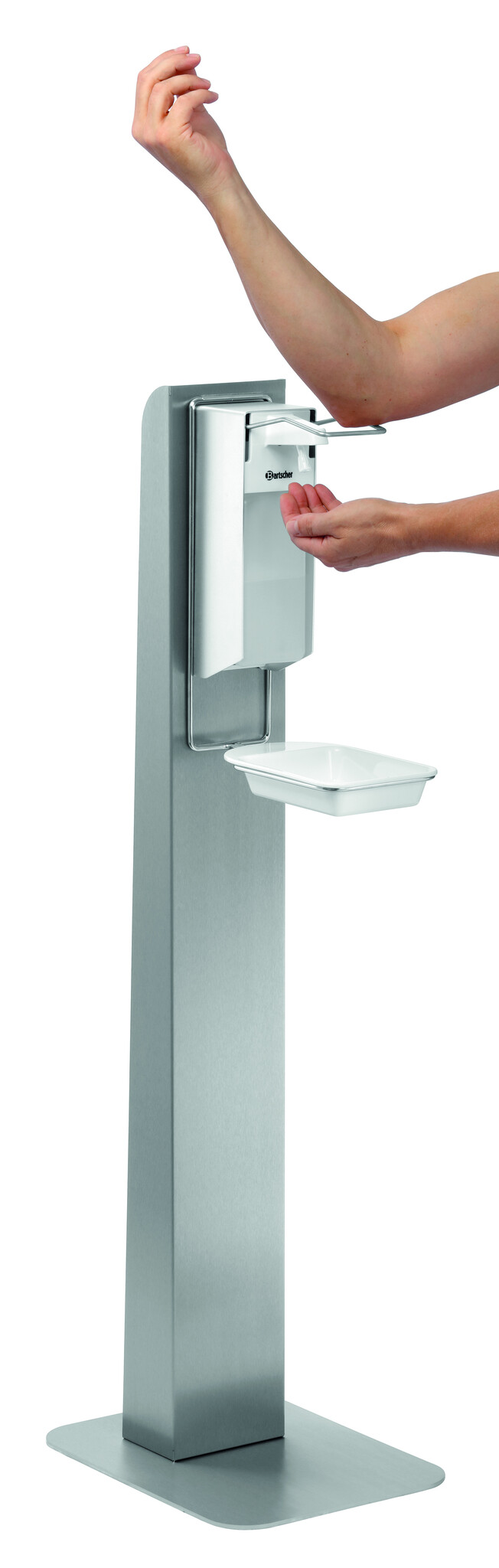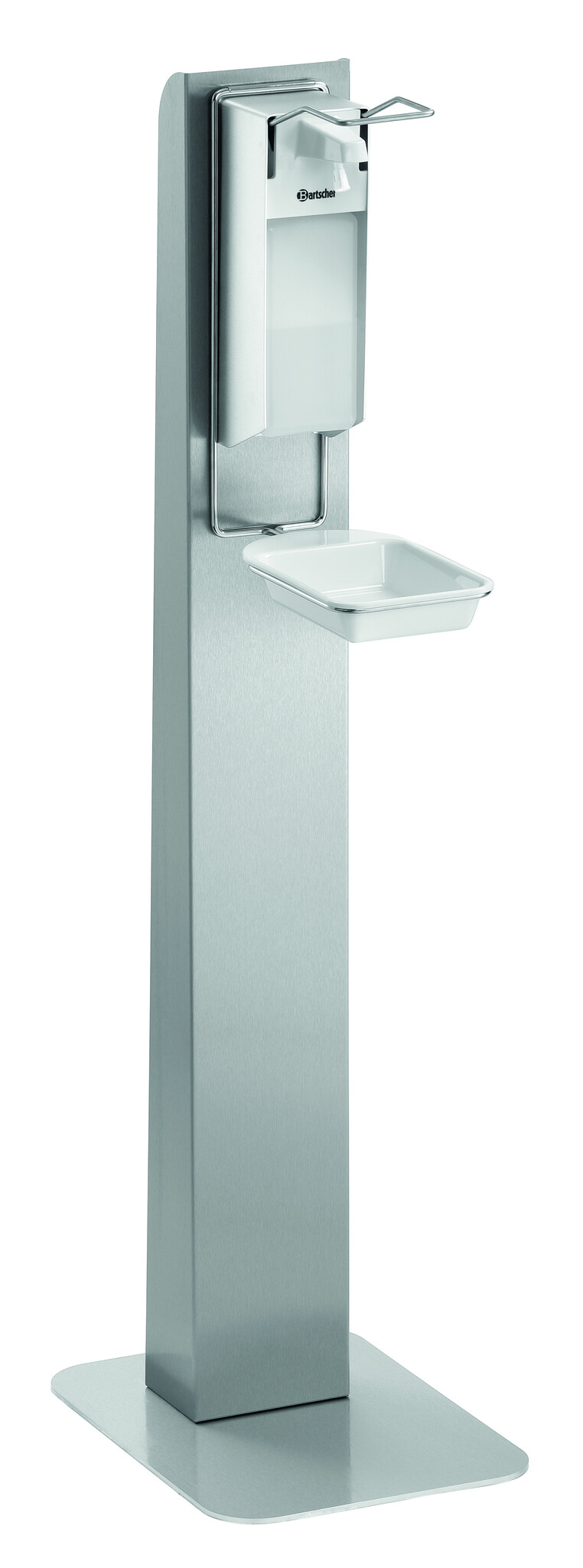 Dozownik dezynfekcyjny, tacka ociekowa i słupek dezynfekcyjny jako przenośny pakiet higieniczny. Dzięki solidnemu wykonaniu ze stali szlachetnej zestaw można stosować na płaskich powierzchniach praktycznie wszędzie – całkowicie według potrzeb i bez mocowania.Podmiot odpowiedzialny (GPSR):
