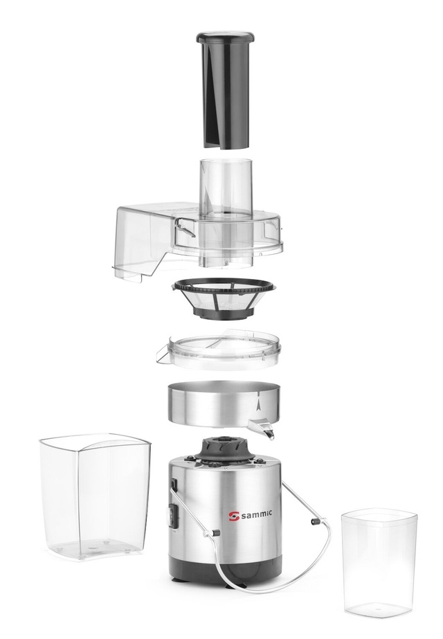 - Specjalnie zaprojektowane pokrywy pojemnika na miąższ zapobiegające zatykaniu się urządzenia