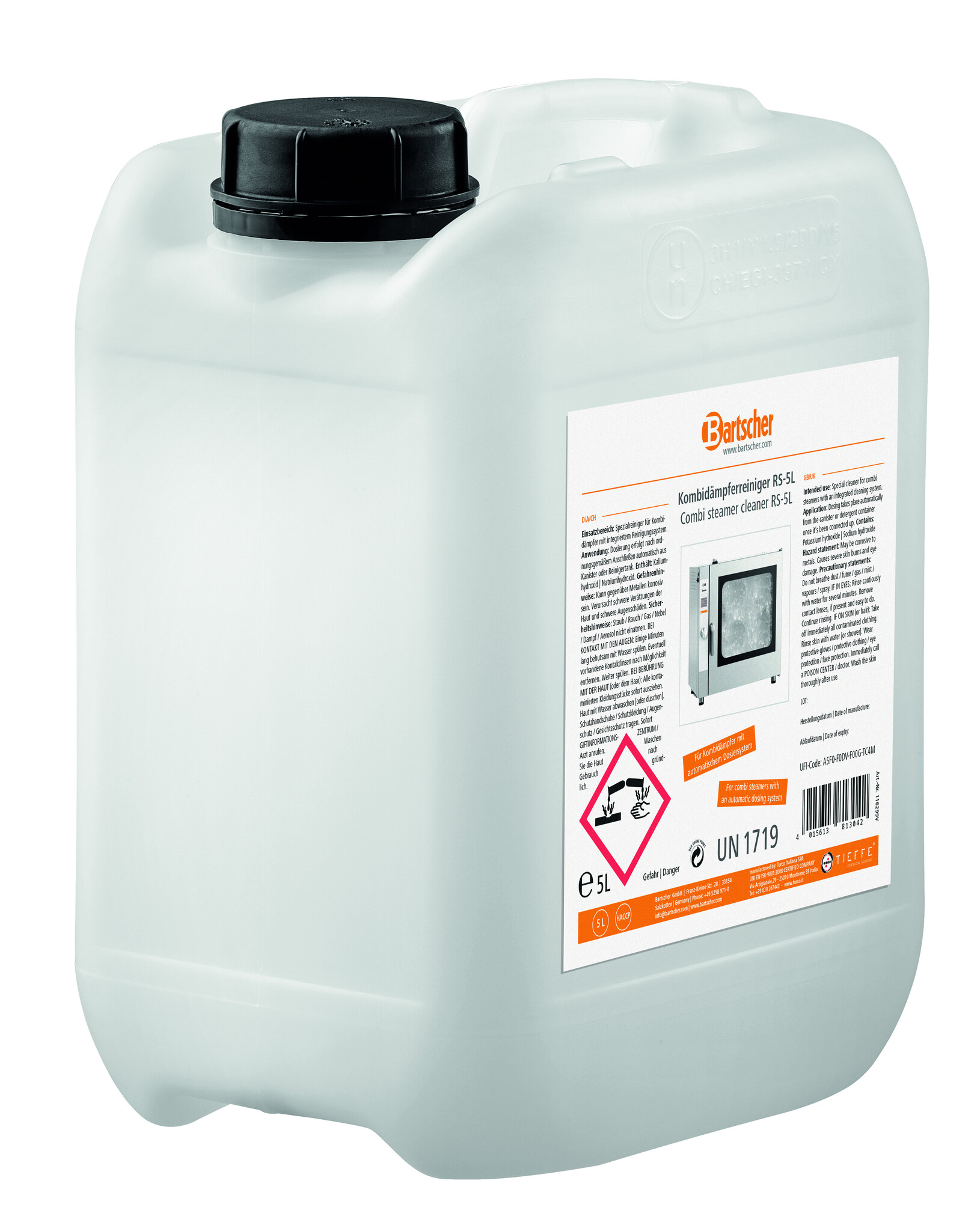 Do pieców konwekcyjno-parowych ze zintegrowanym systemem czyszczenia – wydajny i bezpieczny dla powierzchni środek czyszczący do usuwania pozostałości jedzenia i tłuszczu wewnątrz pieców konwekcyjno-parowych.Podmiot odpowiedzialny (GPSR):