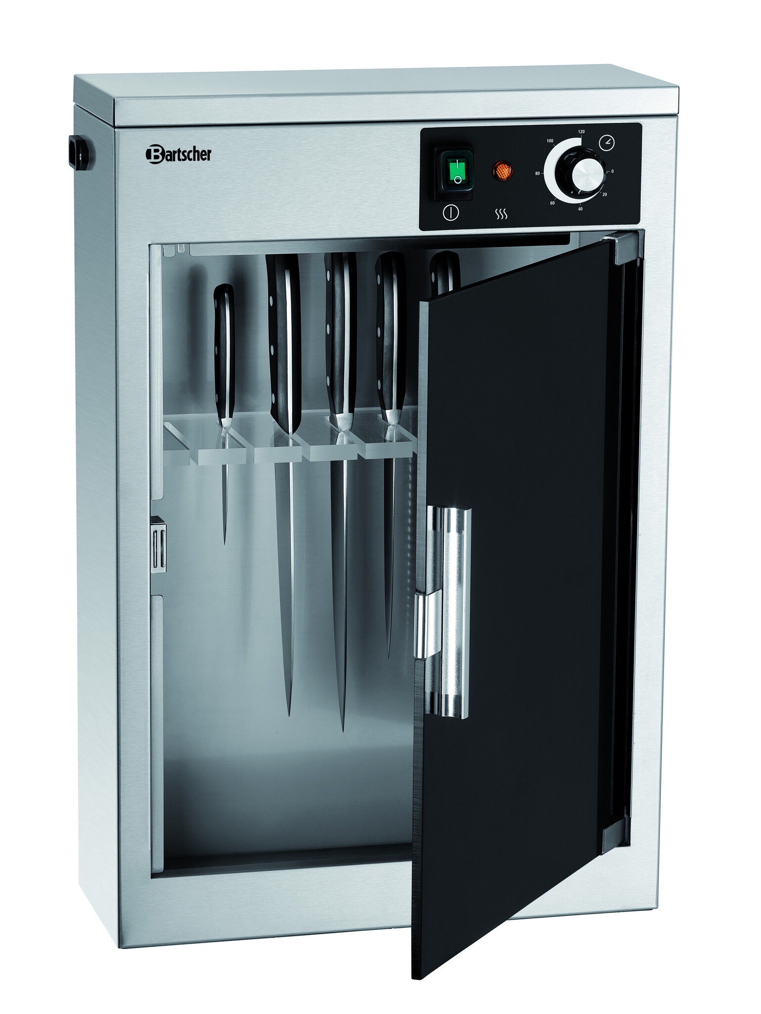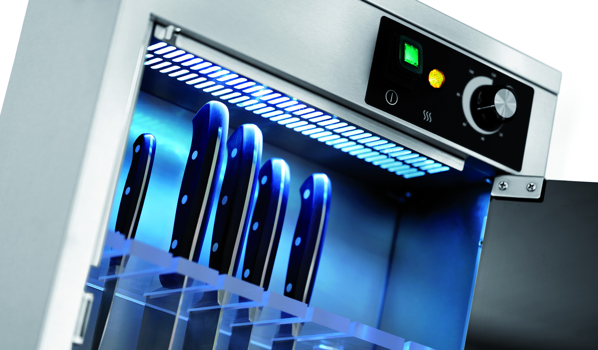 Higiena i bezpieczeństwo: barwiona na czarno szyba chroni przed światłem UV, które służy do sterylizacji nawet do 9 noży. Wystarczy zawiesić noże, zamknąć drzwi i ustawić timer.Podmiot odpowiedzialny (GPSR):