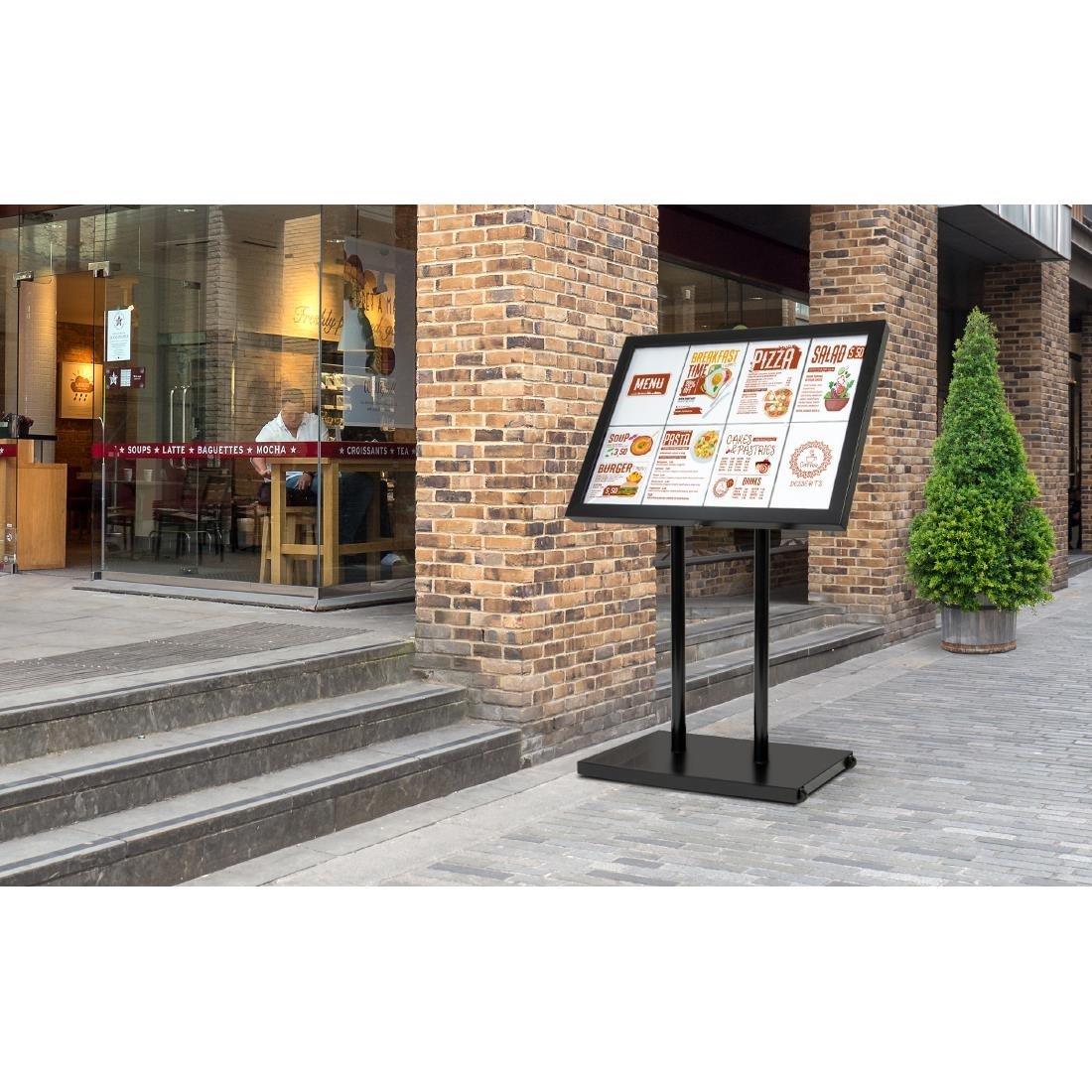 Czarnie pomalowany (8xA4) wyświetlacz LED Securit z białym wyświetlaczem LED zaprasza klientów do zapoznania się z informacjami o menu Produkt jest odporny na warunki atmosferyczne i łatwy do przenoszenia. Zawiera kabel zasilający o długości 5 metrów, ale może również działać na akumulator (nie dołączony), umożliwiając użytkowanie bez podłączenia do gniazdka.