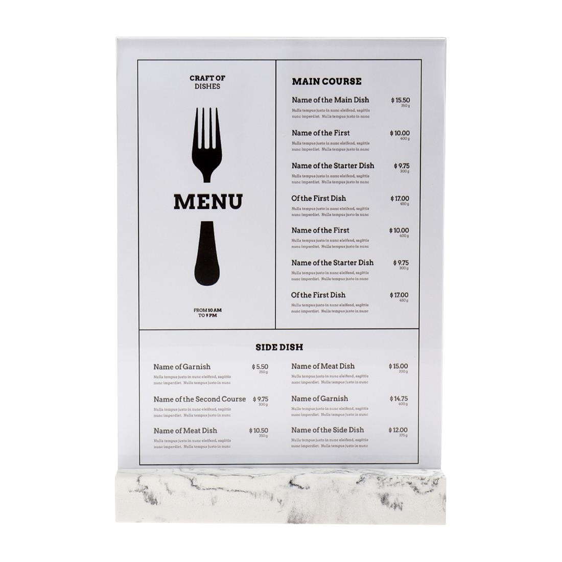 Zwiększ swoją prezentację za pomocą naszej premium A4 Portret Ramki, zaprojektowanej do eleganckiej i krystalicznie czystej prezentacji menu, reklam i innych ważnych informacji