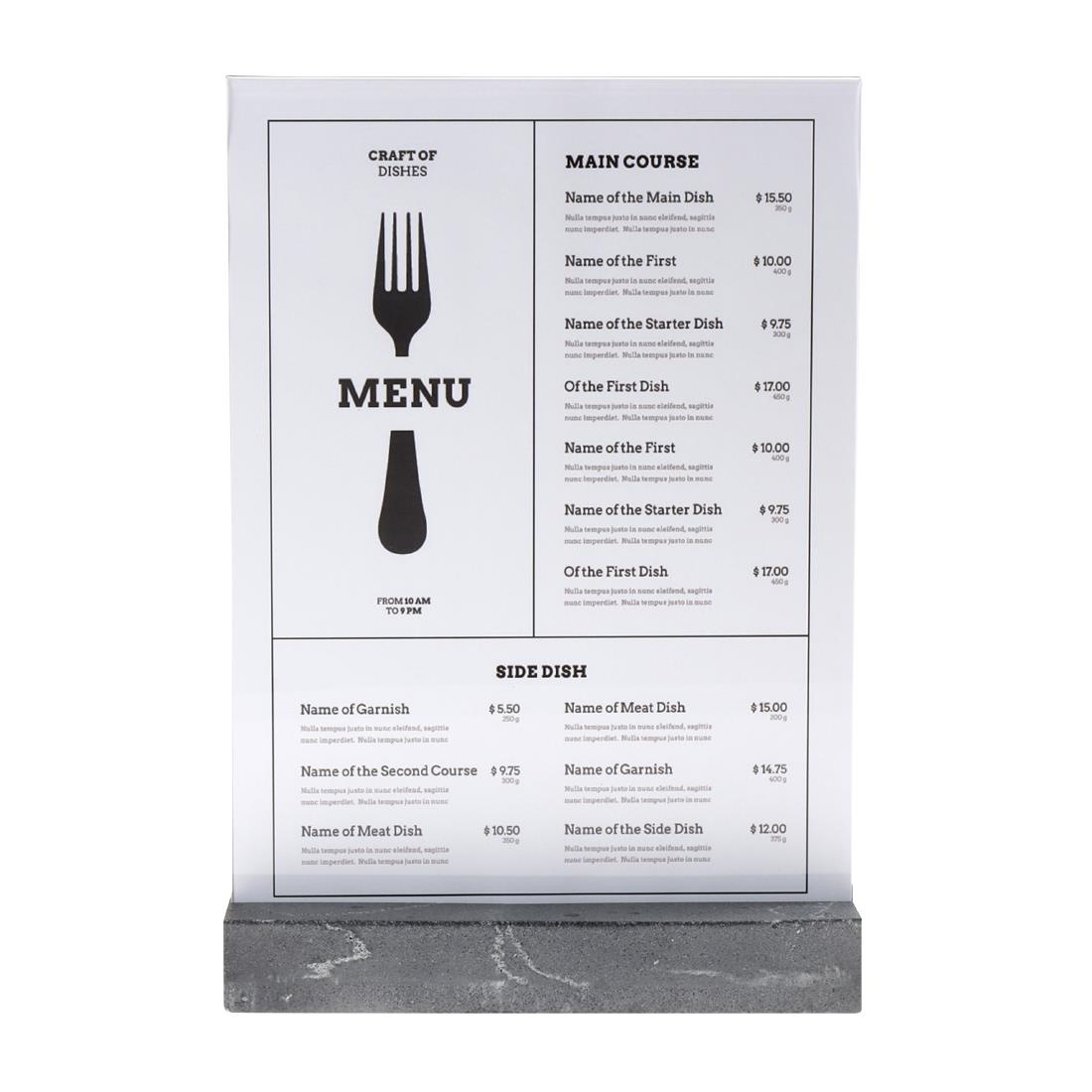 Zwiększ swoją prezentację za pomocą naszej premium A4 Portrait Ramki, zaprojektowanej do wyrafinowanej i krystalicznie czystej prezentacji menu, reklam i innych ważnych informacji