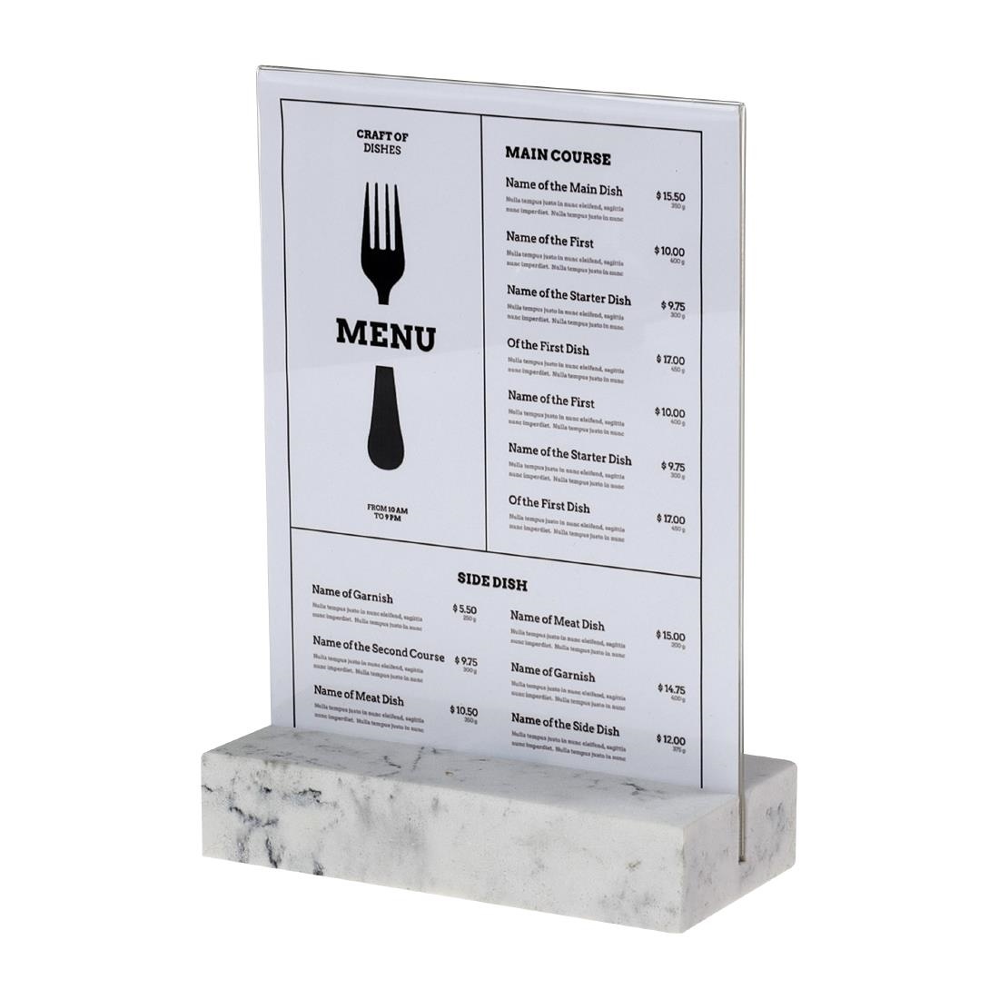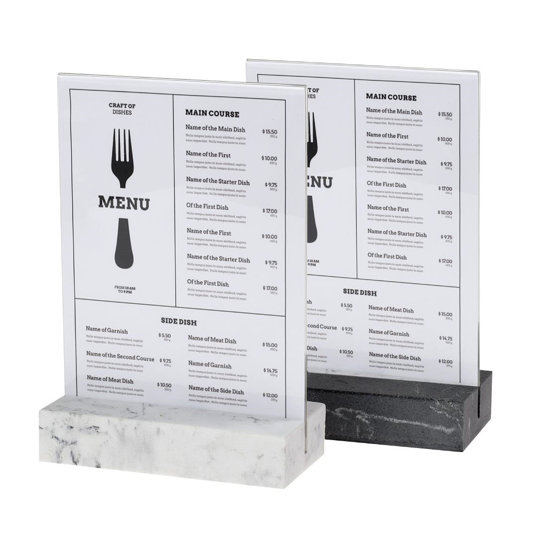 Zwiększ swoją prezentację za pomocą naszej premium A5 portretowej ramki, zaprojektowanej do wyrafinowanej i krystalicznie czystej prezentacji menu, reklam i innych ważnych informacji