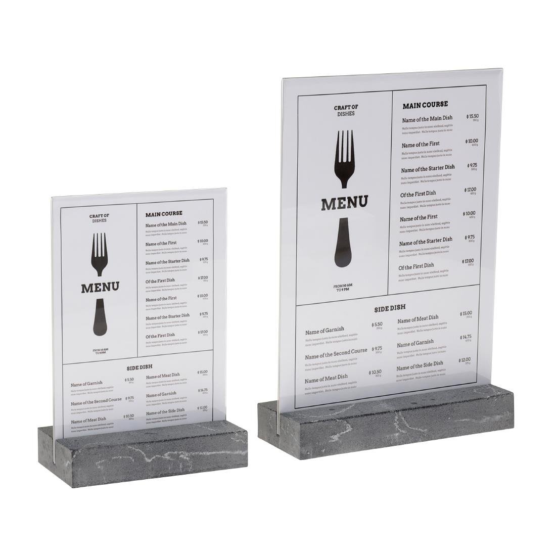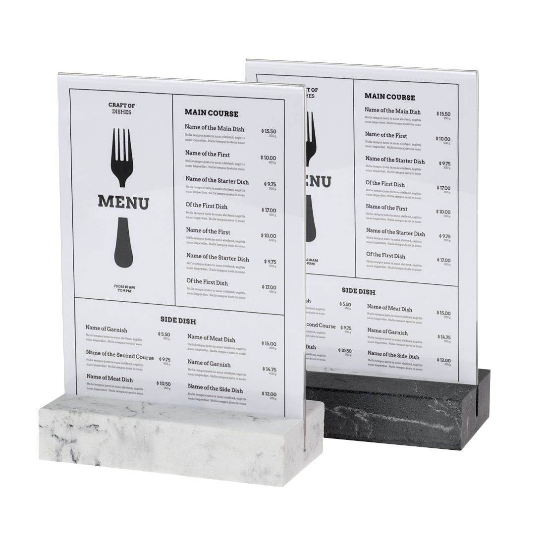 Zwiększ swoją prezentację za pomocą naszej premium A5 Portret Ramki, zaprojektowanej do wyrafinowanej i krystalicznie czystej prezentacji menu, reklam i innych ważnych informacji