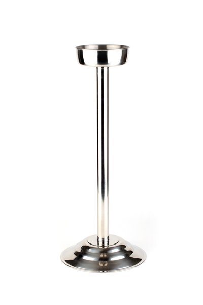 Stojak wykonany ze stali nierdzewnej polerowanej. Ciężka, masywna stopa zwiększa stabilność podstawy. Nadaje się do wszystkich wiaderek do szampana o maksymalnej średnicy podstawy 150 mm. Średnica podstawy 280 mm.