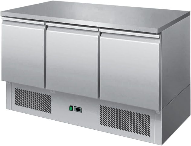 Stół chłodniczy 3-drzwiowy 380 L, od 2 °C do 8 °C, agregat dolny