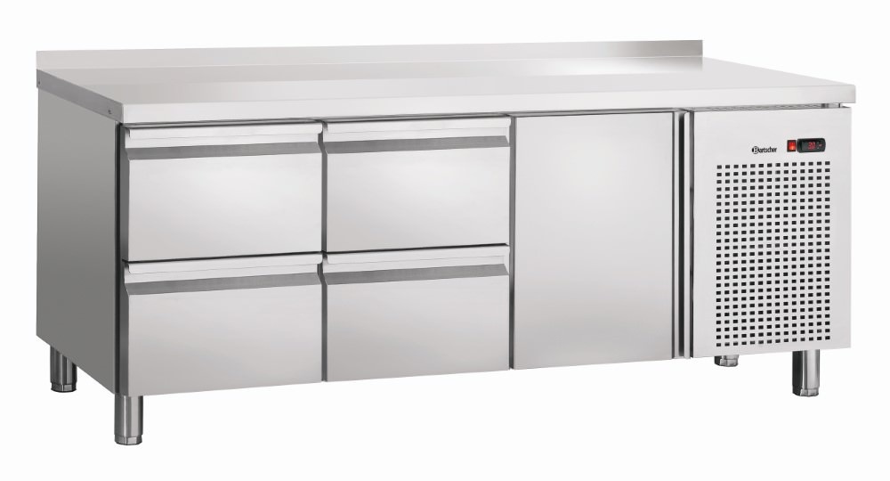 Stół chłodniczy przyścienny z drzwiami i 4 szufladami od 0° C do 10 °C, agregat boczny