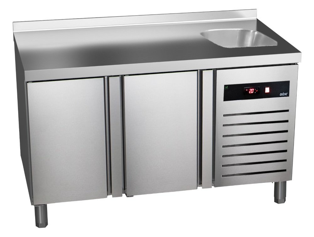 Stół mroźniczy przyścienny ze zlewem 2-drzwiowy 143 L, od -22 °C do -18 °C, agregat boczny