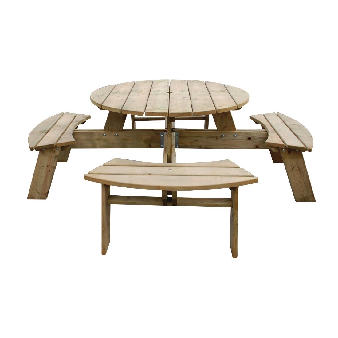 Jeśli szukasz mebli ogrodowych, które są zarówno stylowe, jak i praktyczne, wybierz tę okrągłą, drewnianą ławkę piknikową Rowlinson o średnicy 6,5 stopy