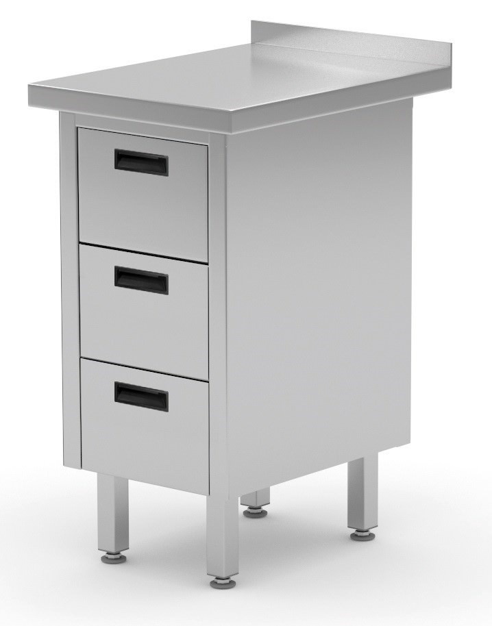 Stół przyścienny ze stali nierdzewnej z trzema szufladami o wymiarach 430x600x(h)850 mm