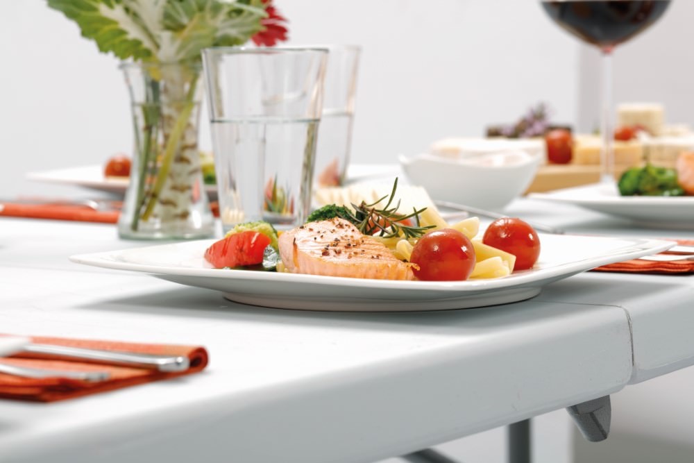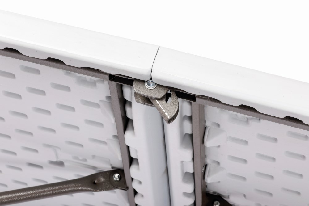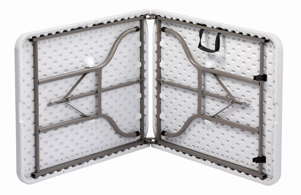 Stabilny stół składany z wytrzymałą powierzchnią z tworzywa sztucznego jest błyskawicznie gotowy do użycia, a dzięki lekkiej i kompaktowej konstrukcji ma uniwersalne zastosowanie.