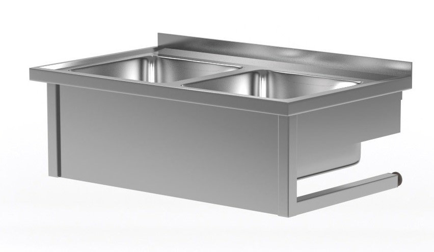 Stół wiszący ze stali nierdzewnej z dwoma zlewami o wymiarach 1000x700x(h)300 mm
