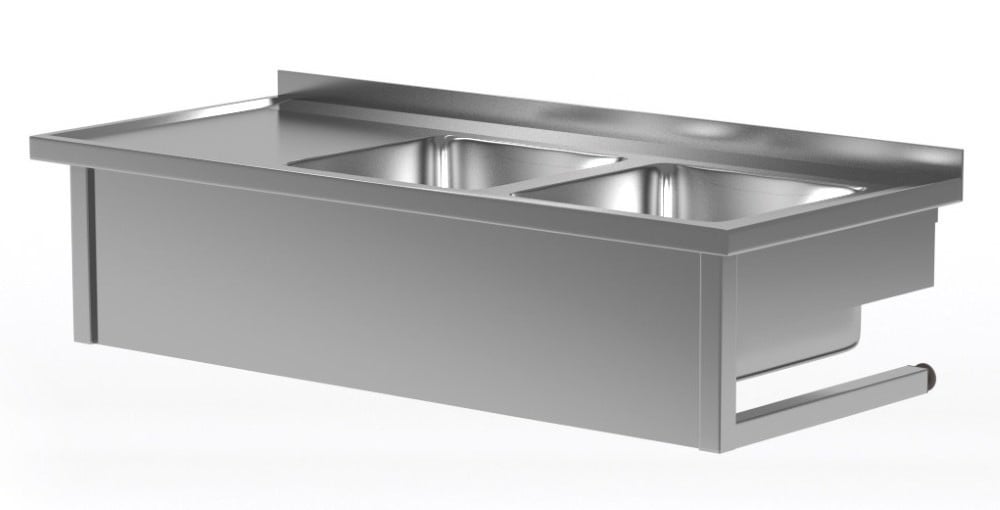 Stół wiszący ze stali nierdzewnej z dwoma zlewami- komory po prawej stronie o wymiarach 1300x600x(h)300 mm