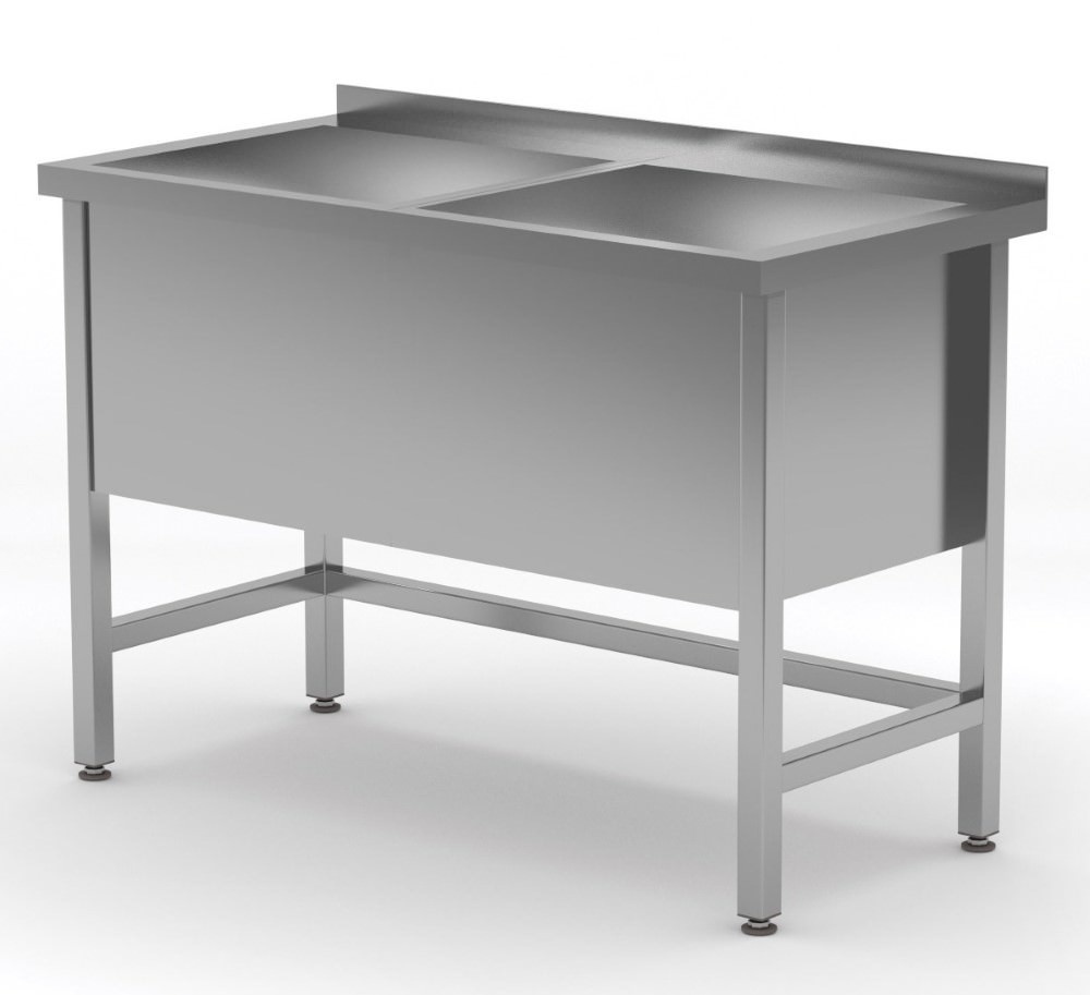 Stół ze stali nierdzewnej z basenem dwukomorowym - wysokość komory h = 400 mm o wymiarach 1300x700x(h)850 mm