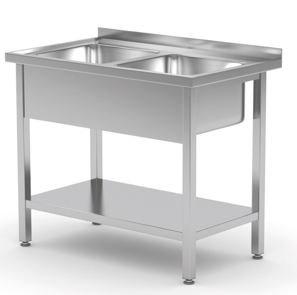 Stół ze stali nierdzewnej z dwoma zlewami i półką o wymiarach 1000x700x(h)850 mm