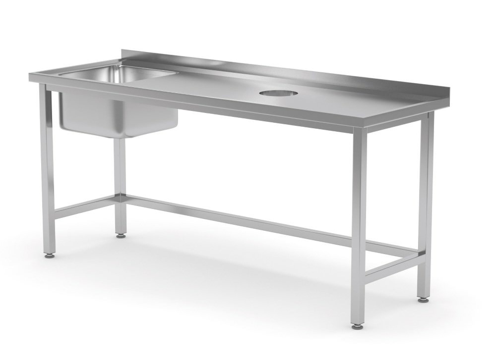 Stół ze stali nierdzewnej ze zlewem i otworem na odpadki - komora po lewej stronie o wymiarach 1400x600x(h)850 mm