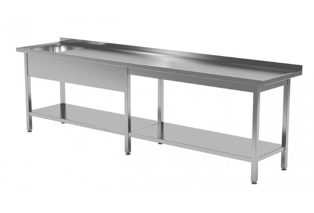 Stół ze stali nierdzewnej ze zlewem i półką - komora po lewej stronie o wymiarach 2300x700x(h)850 mm