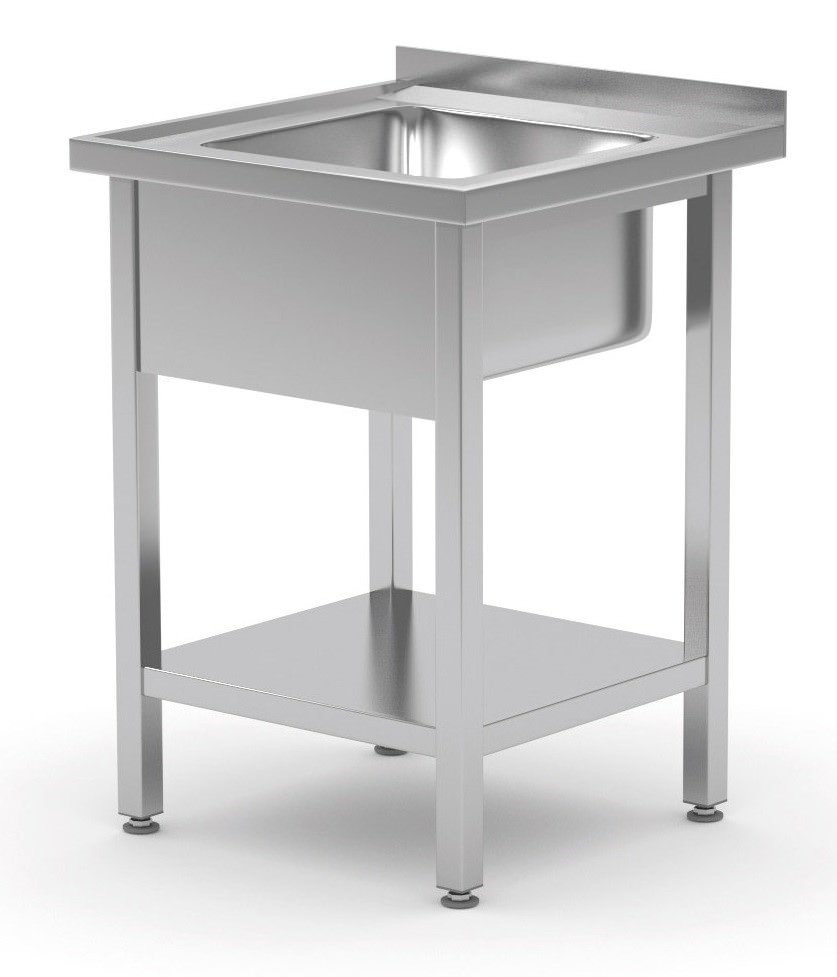 Stół ze stali nierdzewnej ze zlewem i półką o wymiarach 700x600x(h)850 mm