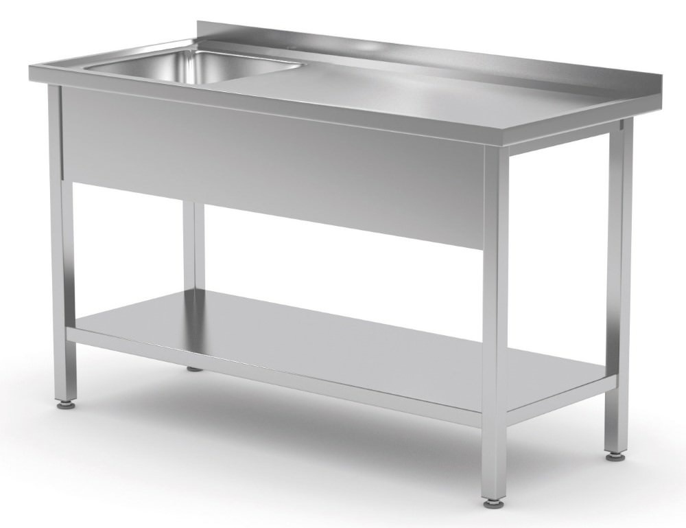 Stół ze stali nierdzewnej ze zlewem i półką - komora po lewej stronie o wymiarach 800x600x(h)850 mm